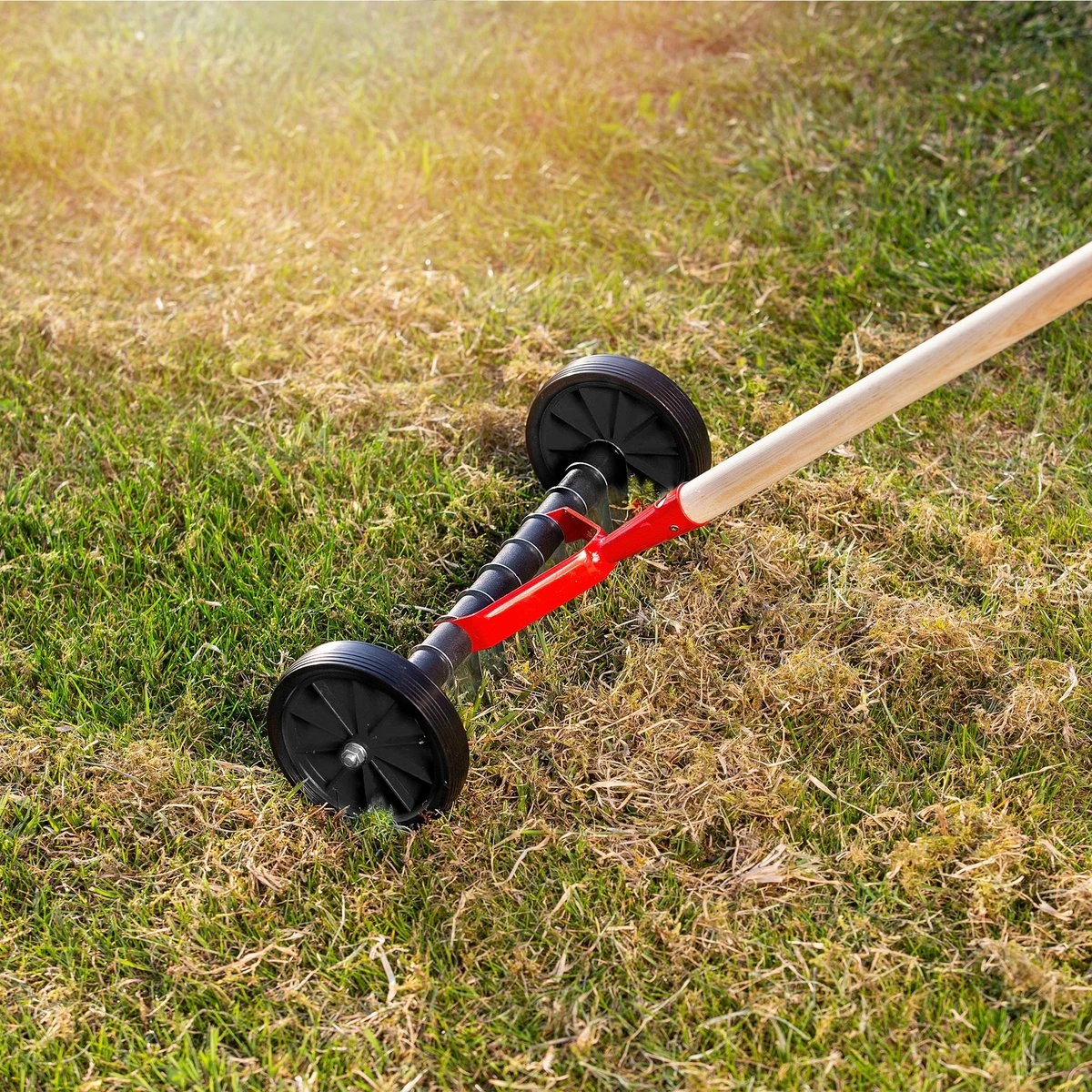 Praktyczny aerator jednostronny na kółkach, który jest doskonałym narzędziem do pielęgnacji trawnika i poprawiania jego jakości. Dzięki użytkowaniu narzędzia trawnik jest ładniejszy, zdrowszy i okazalej się prezentuje.