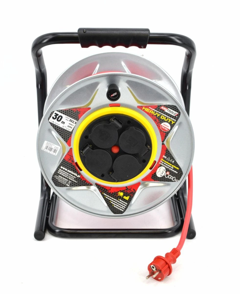 AWTOOLS PRZEDŁUŻACZ BĘBEN METALOWY CZERWONY HEAVY DUTY 50m 3×2,5 Mm 16A / 3680W / IP44