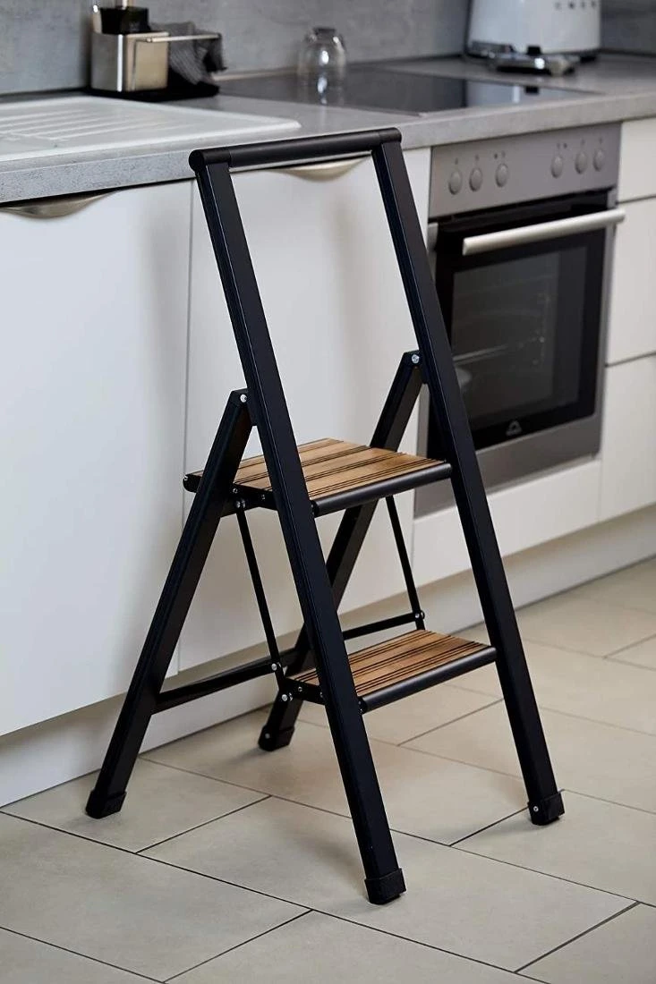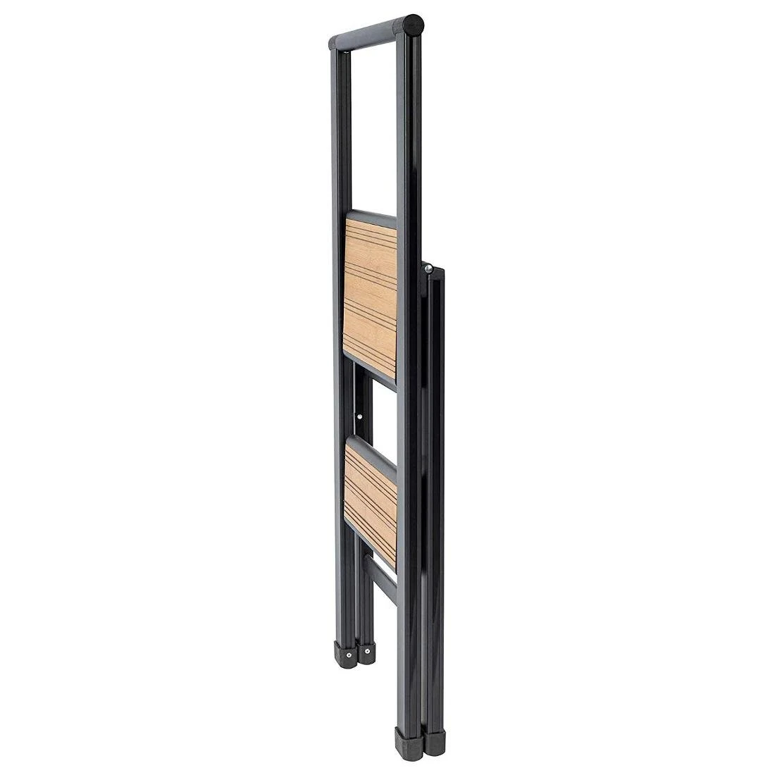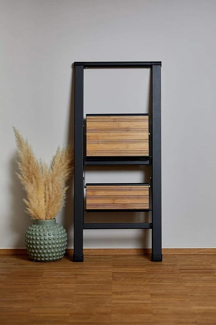Drabinka składana czarna, 2 stopnie od renomowanej niemieckiej marki WENKO ma lekką, aluminiowa konstrukcję, dzięki czemu wyjątkowo łatwo i sprawnie można ją przenieść, a nawet wnieść po schodach. Jest więc odpowiednia do stosowania nawet przez kobiety czy osoby starsze. Ponadto bardzo łatwo się ją składa, dzięki czemu nie zajmuje dużo miejsca w mieszkaniu. Drabina została wyposażona w 2 stopnie z gumowymi paseczkami, które zapewniają antypoślizgowość schodków i gwarantują 100% bezpieczeństwa w trakcie użytkowania produktu.