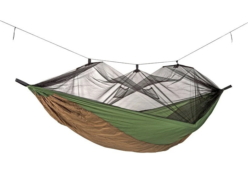 - ultralekki hamak posiada praktyczną moskitierę i wbudowaną kieszeń na podkładkę (podkładka nie jest w zestawie)