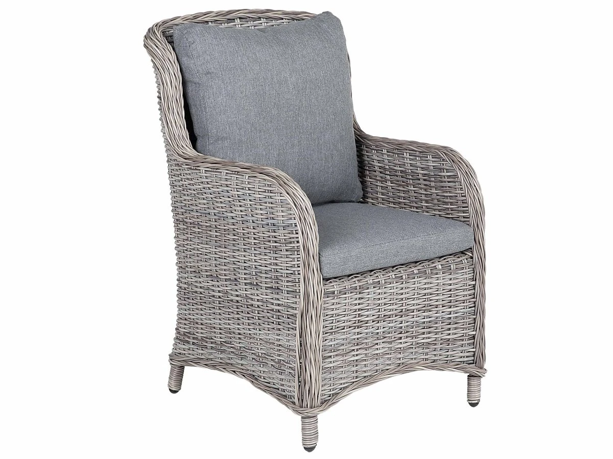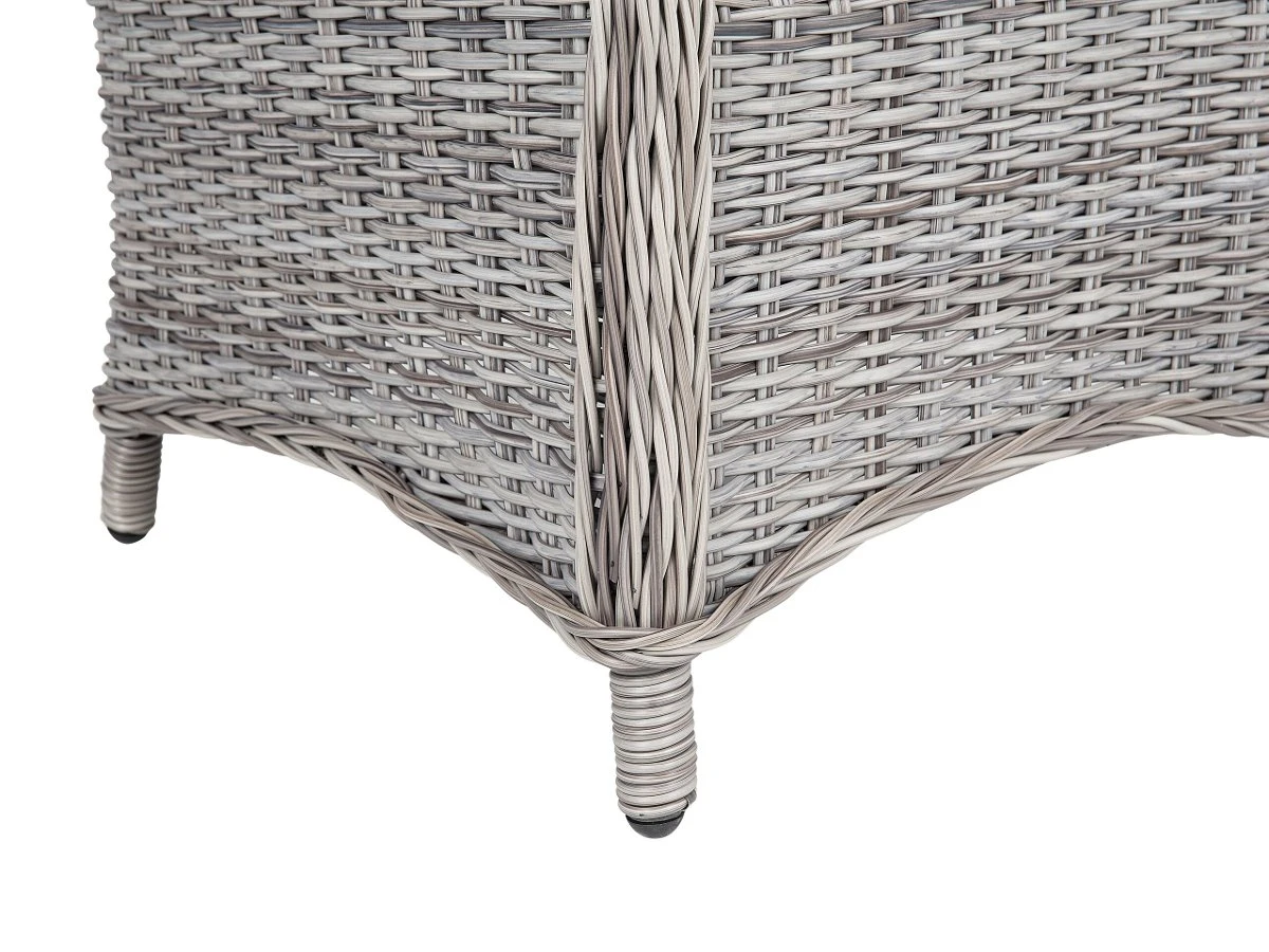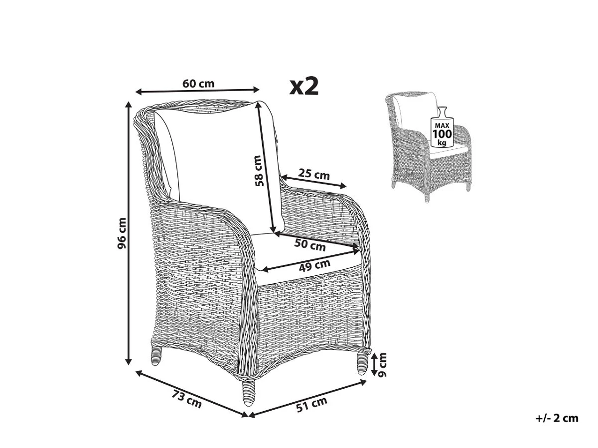 Zestaw foteli ogrodowych z poduchami. Przedstawiony zestaw foteli ogrodowych to idealne rozwiązanie do relaksu na świeżym powietrzu. Miękkie i wyjątkowo wygodne poduchy na oparciu i siedzisku posiadają praktyczny zamek błyskawiczny, dzięki któremu można łatwo zdjąć poszewki i wyprać je w pralce. Wytrzymały aluminiowy stelaż oraz piękna plecionka z rattanu przystosowane są do użytku na zewnątrz i cechują się wyjątkową odpornością na warunki atmosferyczne.