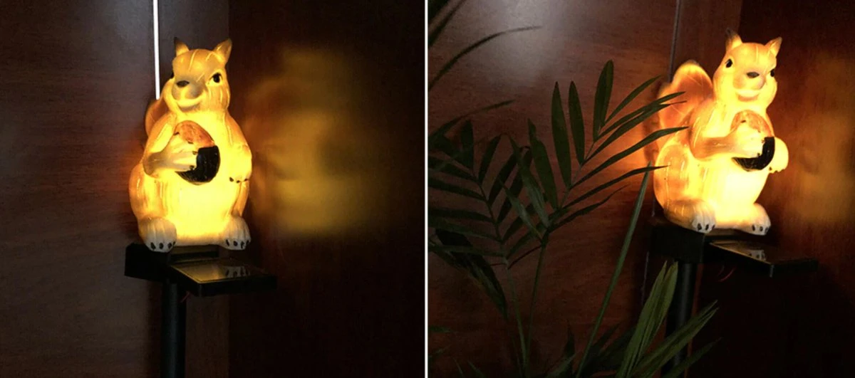 Piękny kształt wiewiórki i wodoodporny design, łatwe do zainstalowania i użytkowania. Świetnie nadaje się do stosowania w oświetleniu dekoracyjnym ogrodu na zewnątrz.