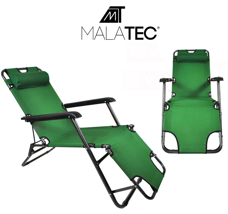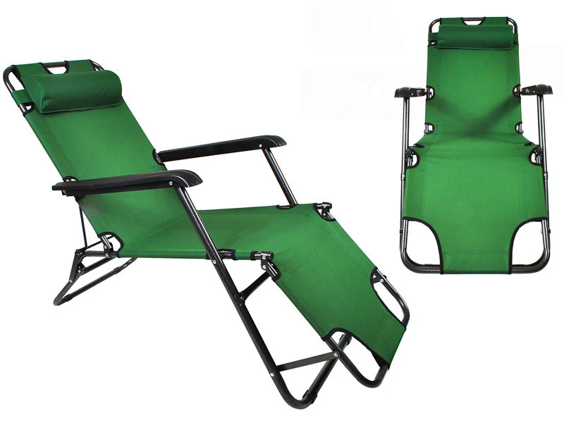 - SPECYFIKACJA – kolor: zielony; wymiary: (dł/szer/wys): 178/60cm; ilość pozycji: 3; materiał obszycia: poliester 600D + PVC; stelaż: stalowy; max. obciążenie: 100kg; waga: 4,8kg.