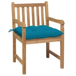 VIDAXL Krzesła Ogrodowe, 2 Szt., Jasnoniebieskie Poduszki, Tekowe
