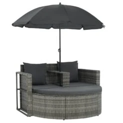 VidaXL 2-osobowa Sofa Z Poduszkami I Parasolem, Polirattan, Szara
