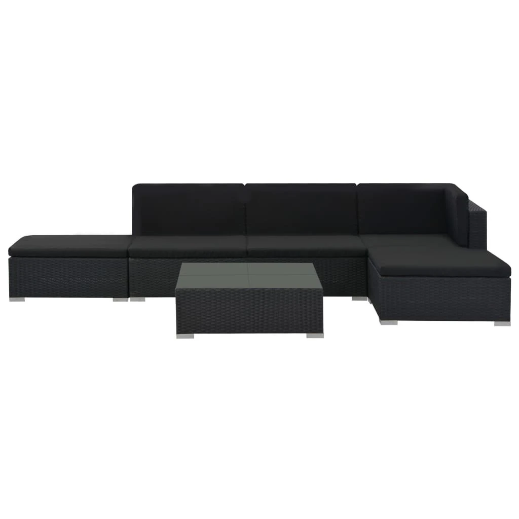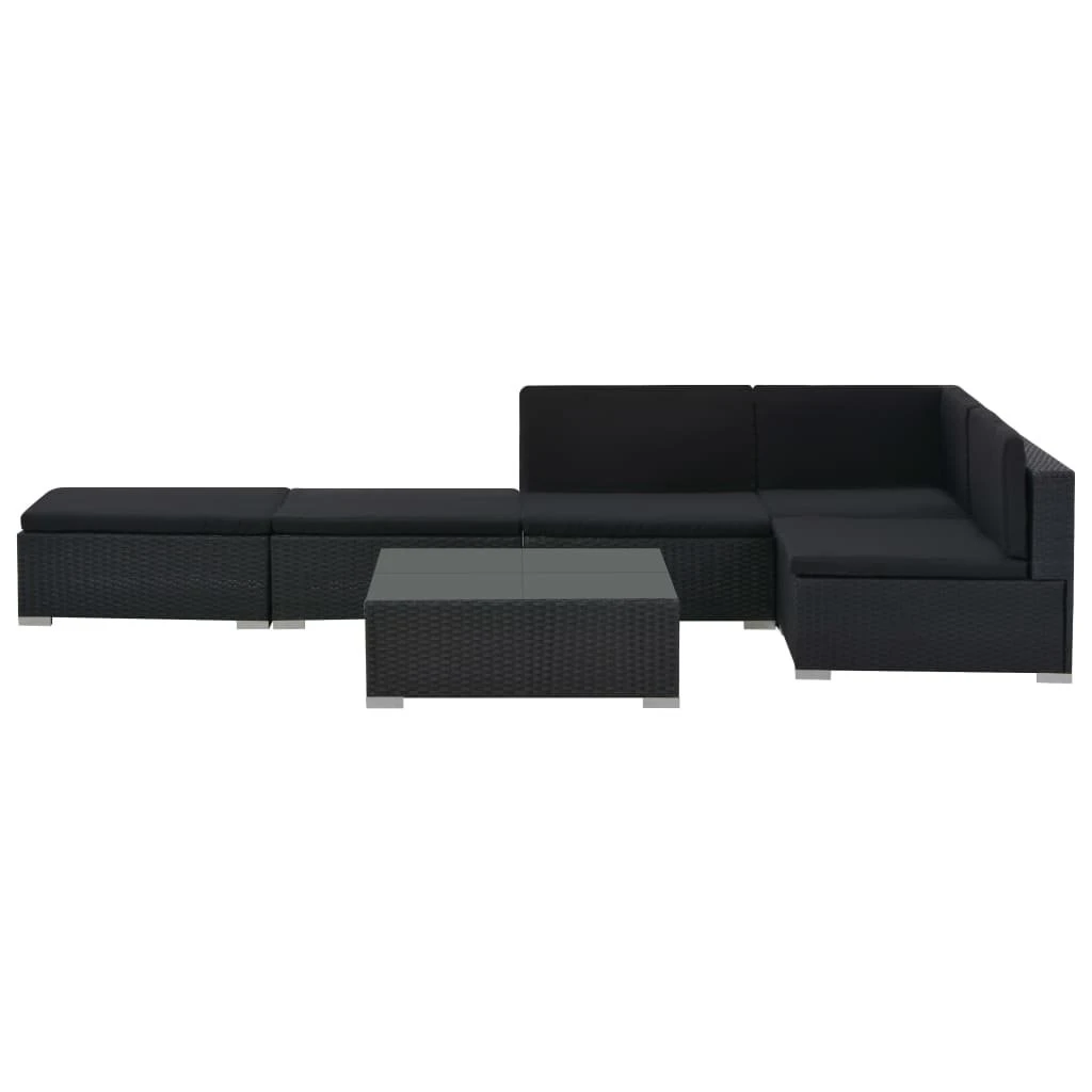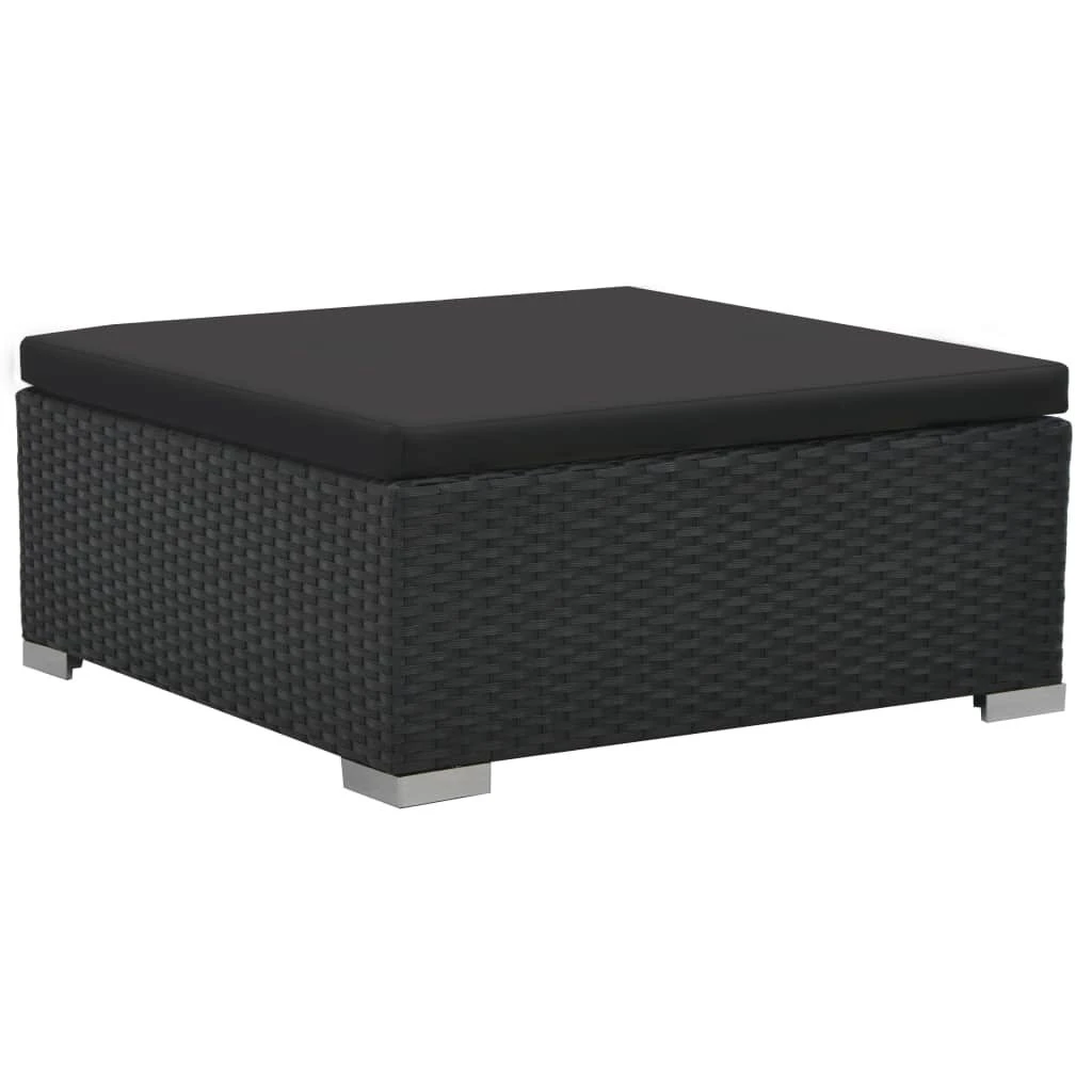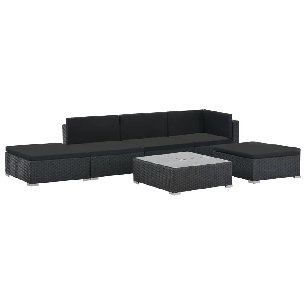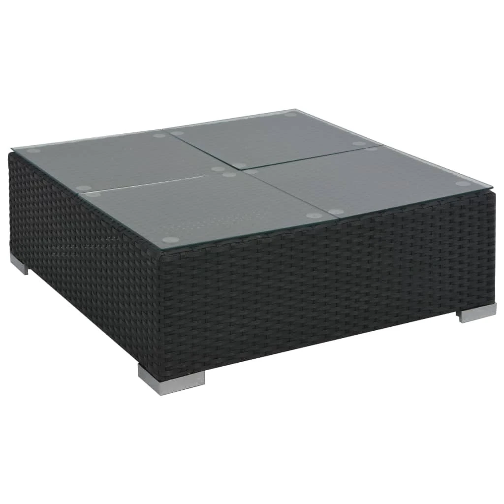 Polirattanowy zestaw wypoczynkowy, składający się z 1 sofy narożnej, 2 sof środkowych, 1 stolika kawowego, 2 pufów, 4 poduszek na oparcia i 5 poduszek na siedziska, stworzy stylowe miejsce do siedzenia na tarasie lub w ogrodzie. Dzięki odpornemu na czynniki pogodowe rattanowi PE zestaw wypoczynkowy jest łatwy w czyszczeniu, wytrzymały i odpowiedni do codziennego użytkowania na zewnątrz. Malowane proszkowo, stalowe ramy zapewniają stabilność i trwałość. Komplet jest lekki, a jego modułowe części można ustawiać w różnych konfiguracjach. Dostarczany jest wraz z bardzo wygodnymi, grubo wyściełanymi poduszkami na siedziska i oparcia, zapewniającymi najwyższy komfort. Ich łatwe w utrzymaniu, poliestrowe powłoczki można zdjąć i wyprać. Zestaw wymaga montażu. Uwaga: na czas deszczu, śniegu lub mrozu zalecamy przykryć meble, aby zapewnić ich dłuższą trwałość.