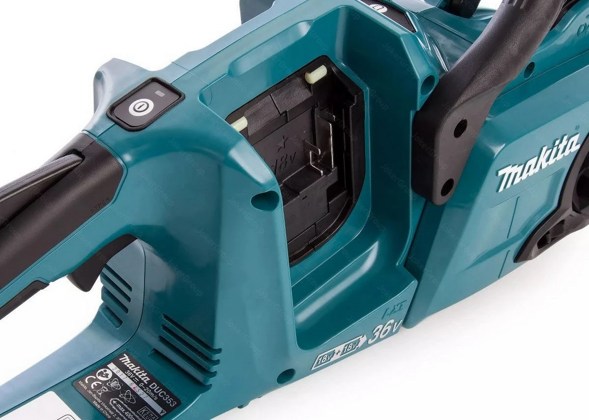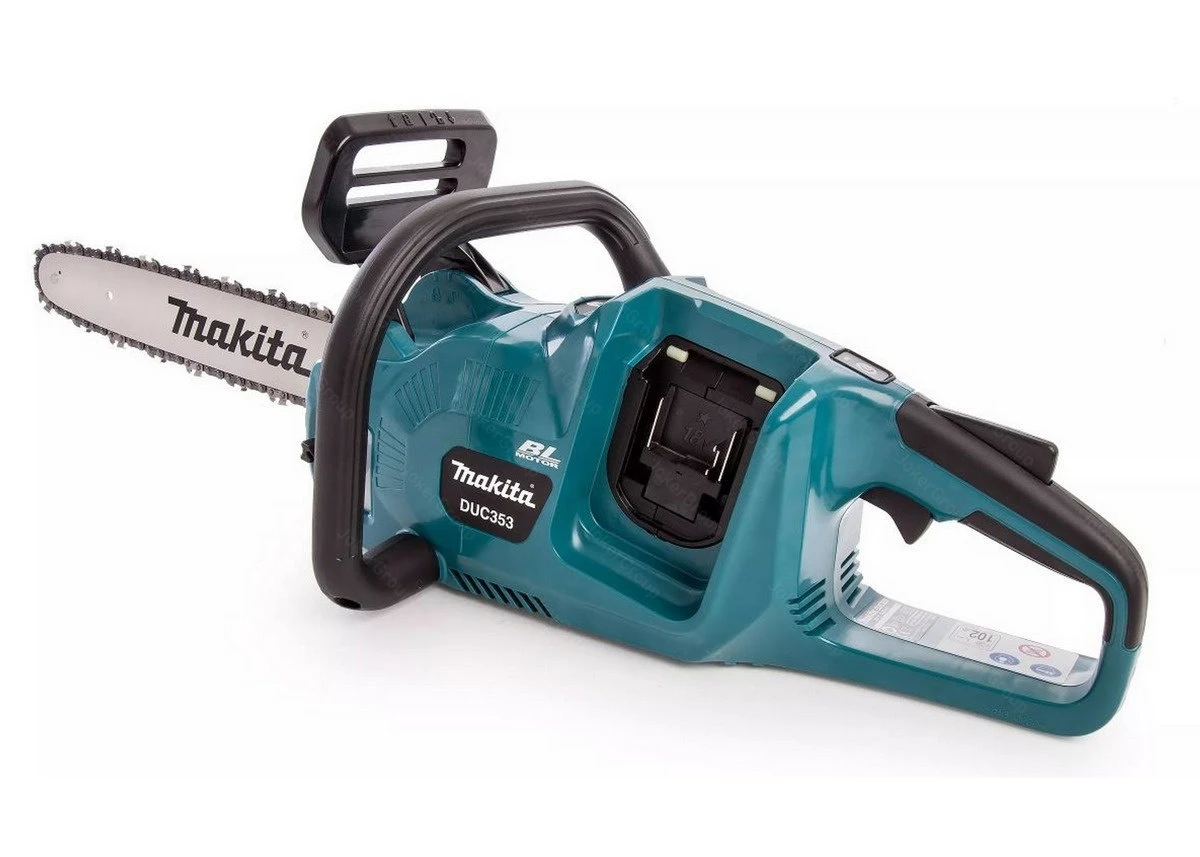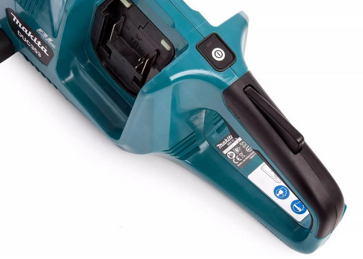 - Akumulatorowa pilarka łańcuchowa MAKITA DUC353Z z prowadnicą o długości 35cm do szybkiego cięcia, odpowiednik piły spalinowej z silnikiem 30 ml. Pilarka wyposażona w wydajny silnik bezszczotkowy zasilany przez dwa akumulatory. W wersji BODY – bez akumulatorów i ładowarki. Wersja BODY przeznaczona jest dla klientów posiadających już akumulatory 18V z serii LXT. Niski poziom hałasu, beznarzędziowa regulacja łańcucha dla wygodnej obsługi i konserwacji. Kontrola prędkości łańcucha spustem włącznika, dodatkowo hamulec odrzutowy i elektryczny dla maksymalnej produktywność i bezpieczeństwa operatora oraz bezpieczny główny wyłącznik zasilania z funkcją automatycznego wyłączenia.