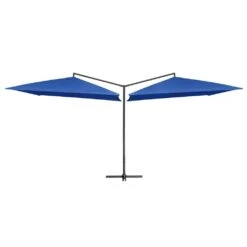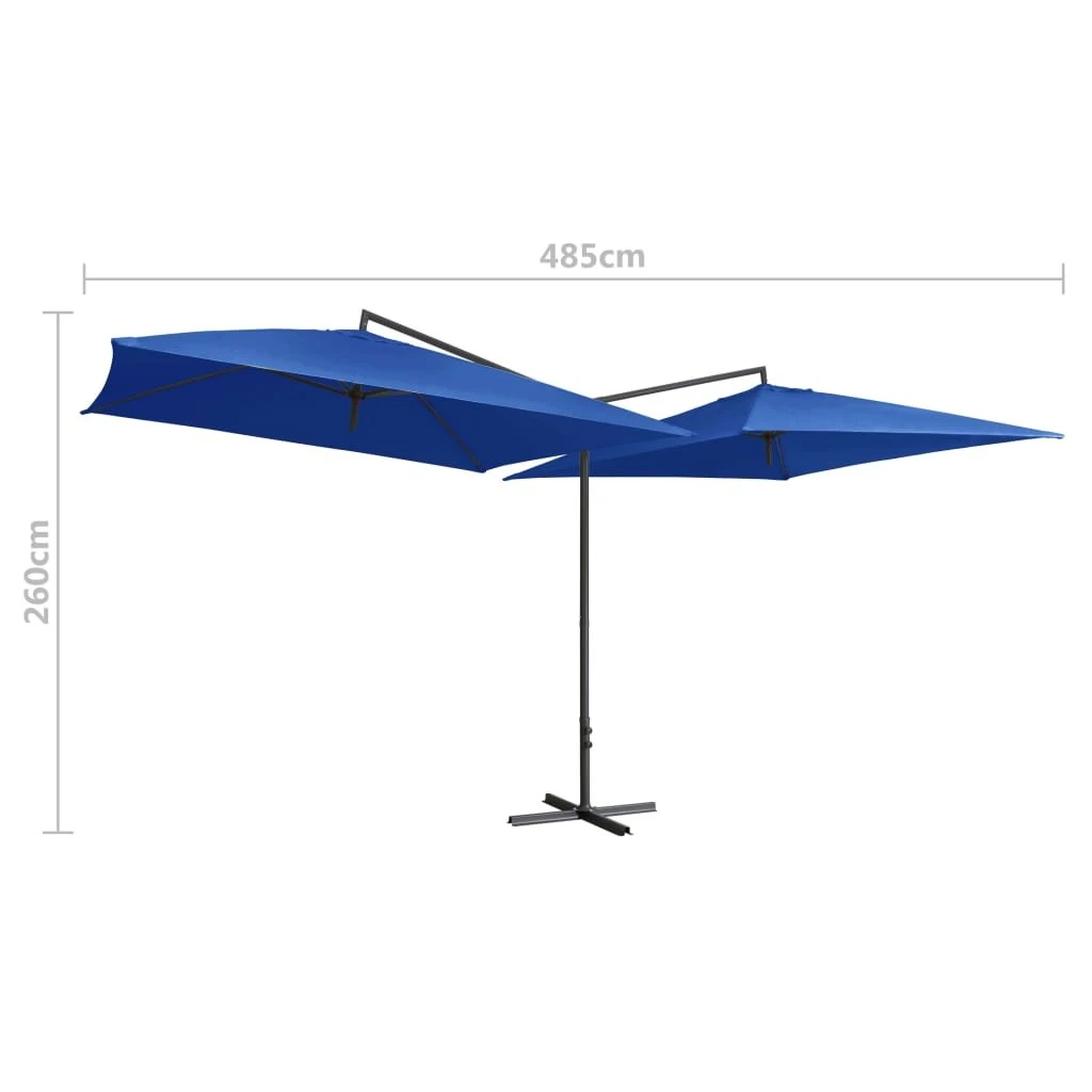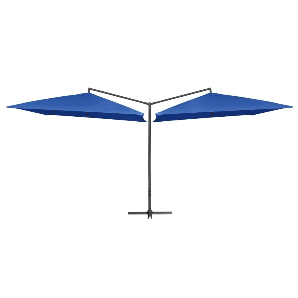 Ten elegancki, podwójny parasol jest idealny, aby stworzyć cień i chronić Cię przed szkodliwym promieniowaniem UV. Charakterystyczna, podwójna czasza sprawi, że będzie przyciągał wzrok na Twoim podwórku! Wykonana z chroniącego przed promieniami UV i nieblaknącego poliestru czasza parasola zapewnia optymalną ochronę przed słońcem i jest łatwa w czyszczeniu. Parasol dostarczany jest wraz z mocną podstawą krzyżową, zwiększającą stabilność. Mocny, malowany proszkowo słupek z trwałymi żebrami czyni parasol trwałym i stabilnym. Nasz parasol ogrodowy można z łatwością otworzyć i zamknąć przy pomocy mechanizmu z korbką. Jego montaż jest prosty. UWAGA: tego produktu NIE WOLNO używać podczas złej pogody, takiej jak silny wiatr, intensywne opady deszczu lub śniegu, burza itp.