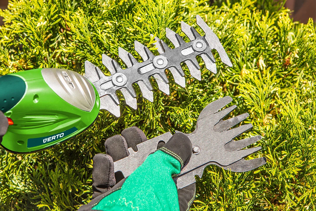 Trymer do trawy i żywopłotu VERTO (nr ref. 52G311) zasilany wydajnym akumulatorem Li-Ion 7.2V o pojemności 1.3Ah, umożliwia cięcie o szerokości 80 mm (nożyce do trawy) oraz 12 mm (nożyce do krzewów). Zgodność z europejskimi standardami bezpieczeństwa zapewnia certyfikat CE. Marka VERTO oferuje asortyment elektronarzędzi i akcesoriów dla każdego majsterkowicza.