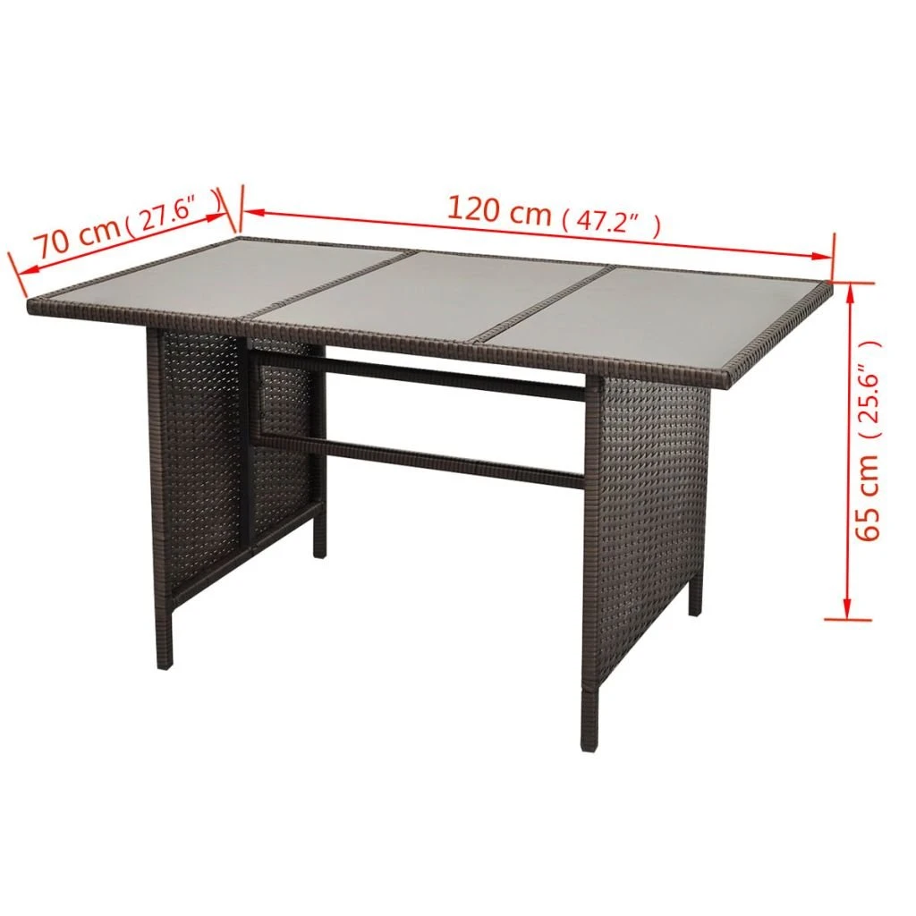 - Materiał: malowana proszkowo stalowa rama + polirattan + blat stołu ze szkła hartowanego