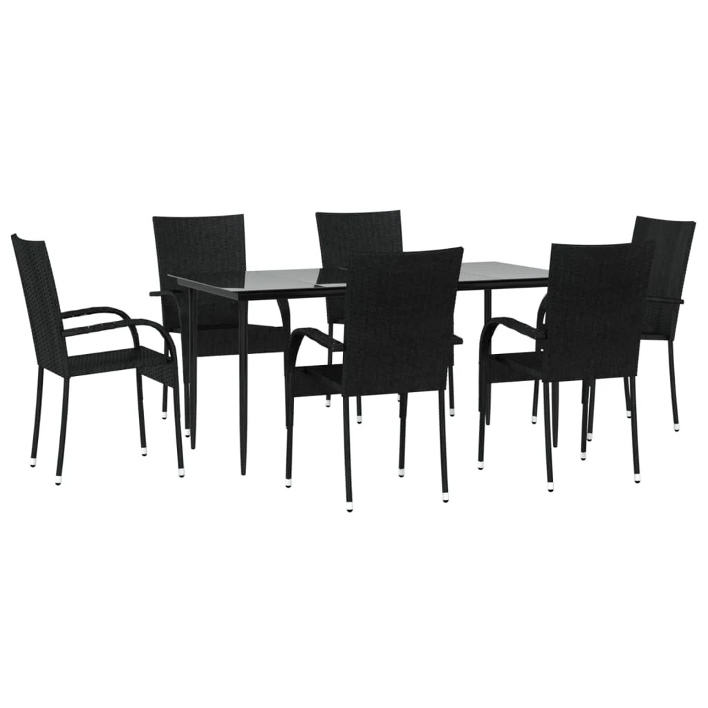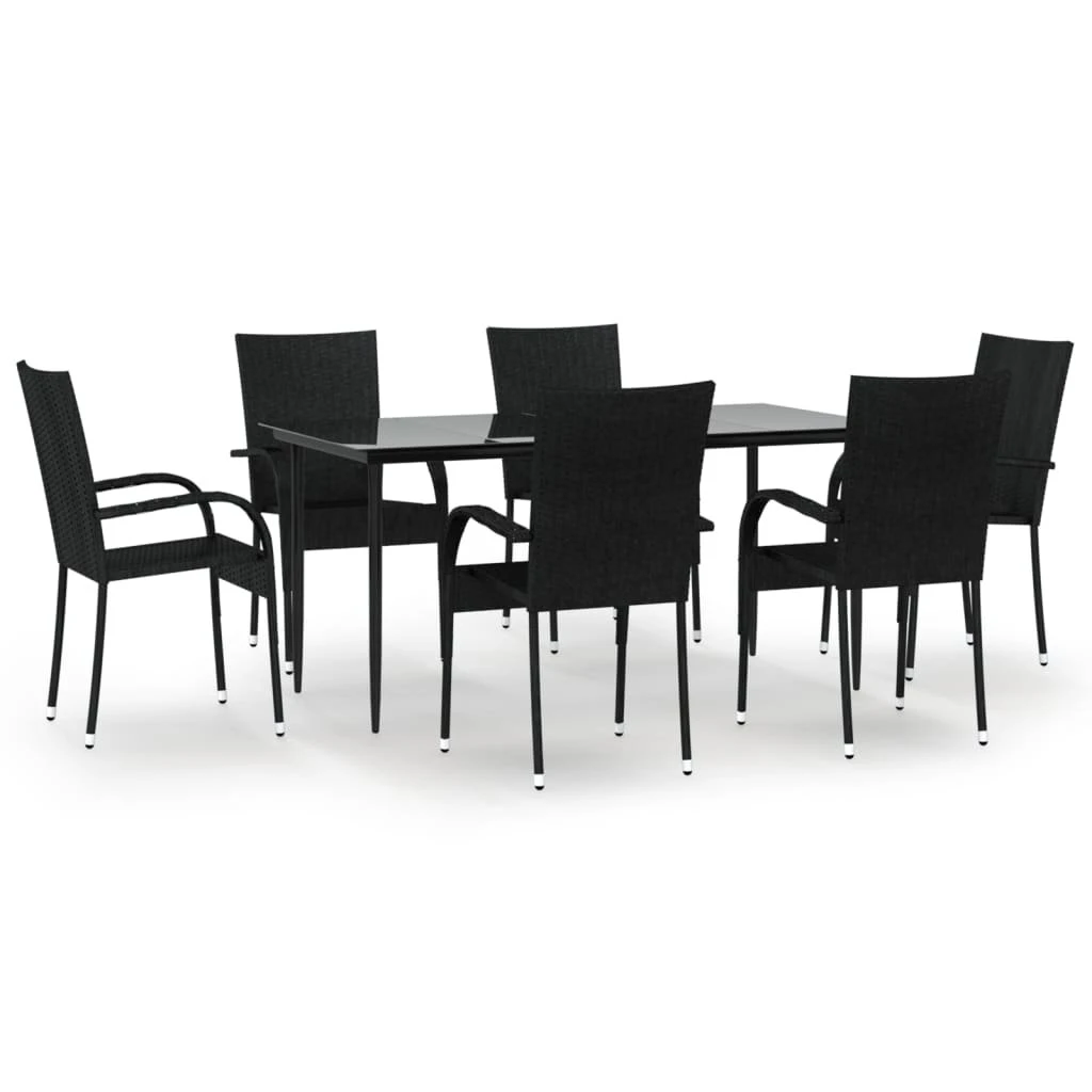 Zestaw mebli ogrodowych stanowi znakomity wybór do spożywania posiłków i relaksu na świeżym powietrzu. Trwały materiał: rattan PE, znany również jako polirattan, jest odporny na czynniki pogodowe i łatwy do utrzymania w czystości. Zachowuje świetny wygląd w warunkach zewnętrznych przez długi czas. Oferuje znakomitą jakość, wygodę i estetyczny wygląd.Solidna rama: malowane proszkowo, stalowe ramy sprawiają, że zestaw ogrodowy jest solidny i stabilny do codziennego użytkowania na zewnątrz.Praktyczny blat: gładki blat stołu wykonano z hartowanego szkła, które można łatwo wyczyścić wilgotną ściereczką. Dodatkowo solidny blat idealnie nadaje się do postawienia posiłków, napojów i przedmiotów dekoracyjnych.Uniwersalna konstrukcja: dzięki lekkiej konstrukcji krzesła te można łatwo przestawiać i ustawiać w stos, aby zaoszczędzić miejsce, gdy nie są używane. Uwaga:Aby przedłużyć żywotność mebli ogrodowych, zalecamy zabezpieczenie ich wodoodpornym pokrowcem.Każdy produkt jest dostarczany wraz z instrukcją montażu dla ułatwienia tej czynności.