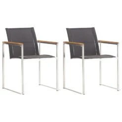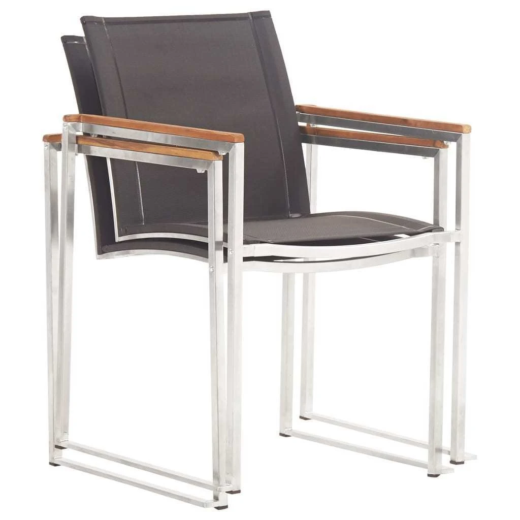 Te sztaplowane krzesła ogrodowe staną się punktem centralnym Twojego ogrodu lub patio. Mebel wykonany został z niezwykle trwałego, twardego drewna tekowego, które było sezonowane, suszone komorowo, a następnie drobno oszlifowane, by nadać mu bardzo gładką powierzchnię. Drewno tekowe znane jest z wyjątkowej wytrzymałości i odporności na warunki atmosferyczne, dzięki czemu jest znacznie bardziej odpowiednie do produkcji mebli ogrodowych niż jakikolwiek inne. Tek to idealny wybór, jeśli chcesz kupić trwałe meble ogrodowe. Krzesła są również wykonane z tworzywa textilene i wysokiej jakości stali nierdzewnej, co czyni je odpornymi na rdzę, solidnymi, a także łatwymi do czyszczenia wilgotną ściereczką. Usiądź do uroczej kolacji na świeżym powietrzu lub po prostu zrelaksuj się i ciesz się pogodą za sprawą tego klasycznego zestawu krzeseł ogrodowych. Są one łatwe w montażu.