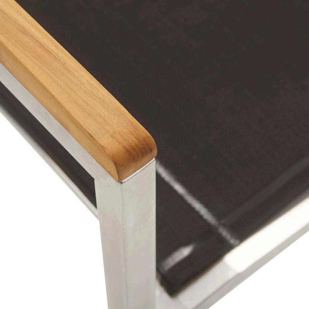 - Materiał: textilene, stal nierdzewna, lite drewno tekowe