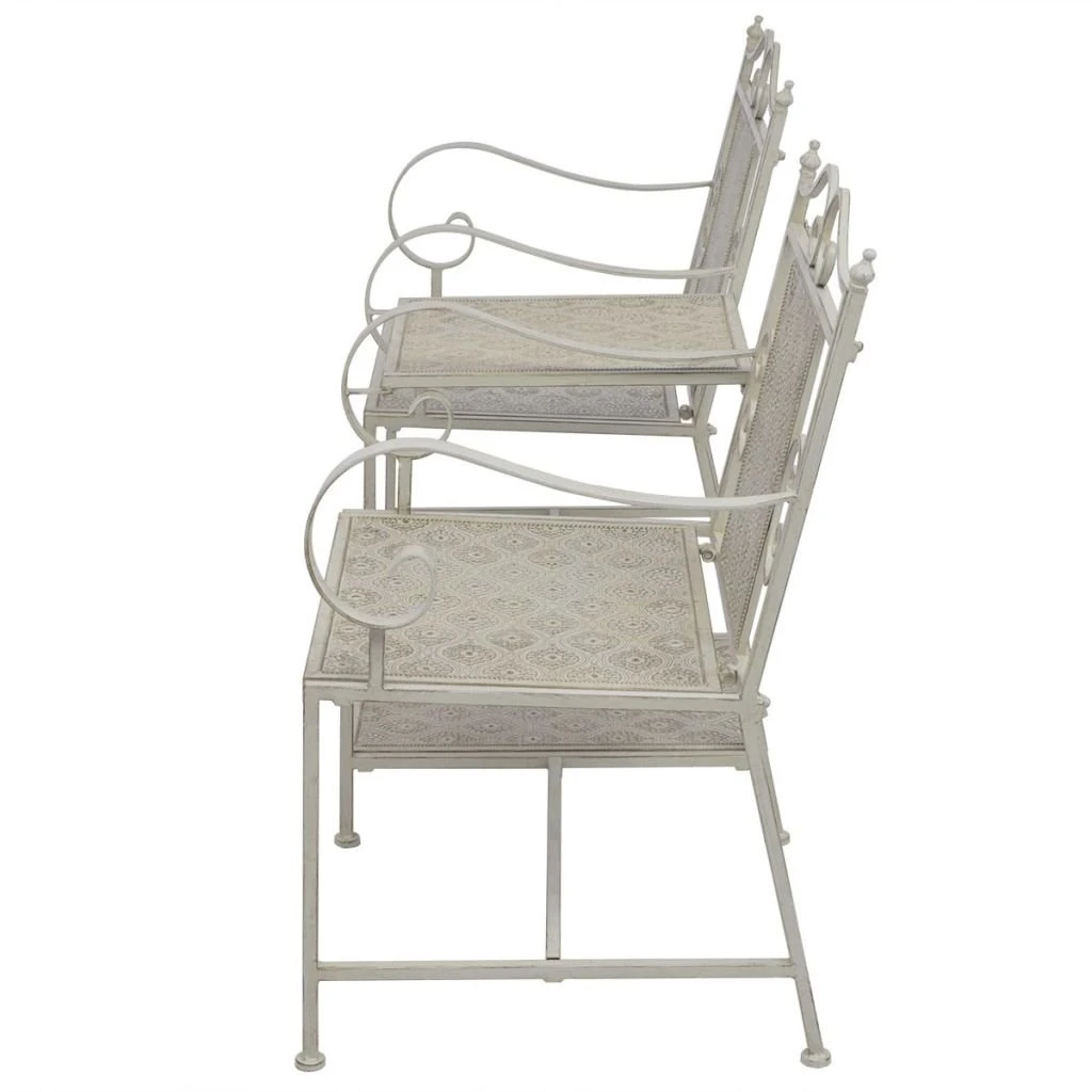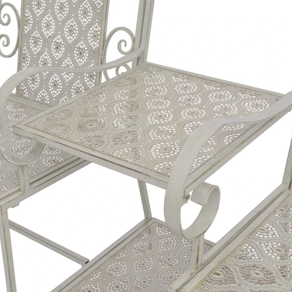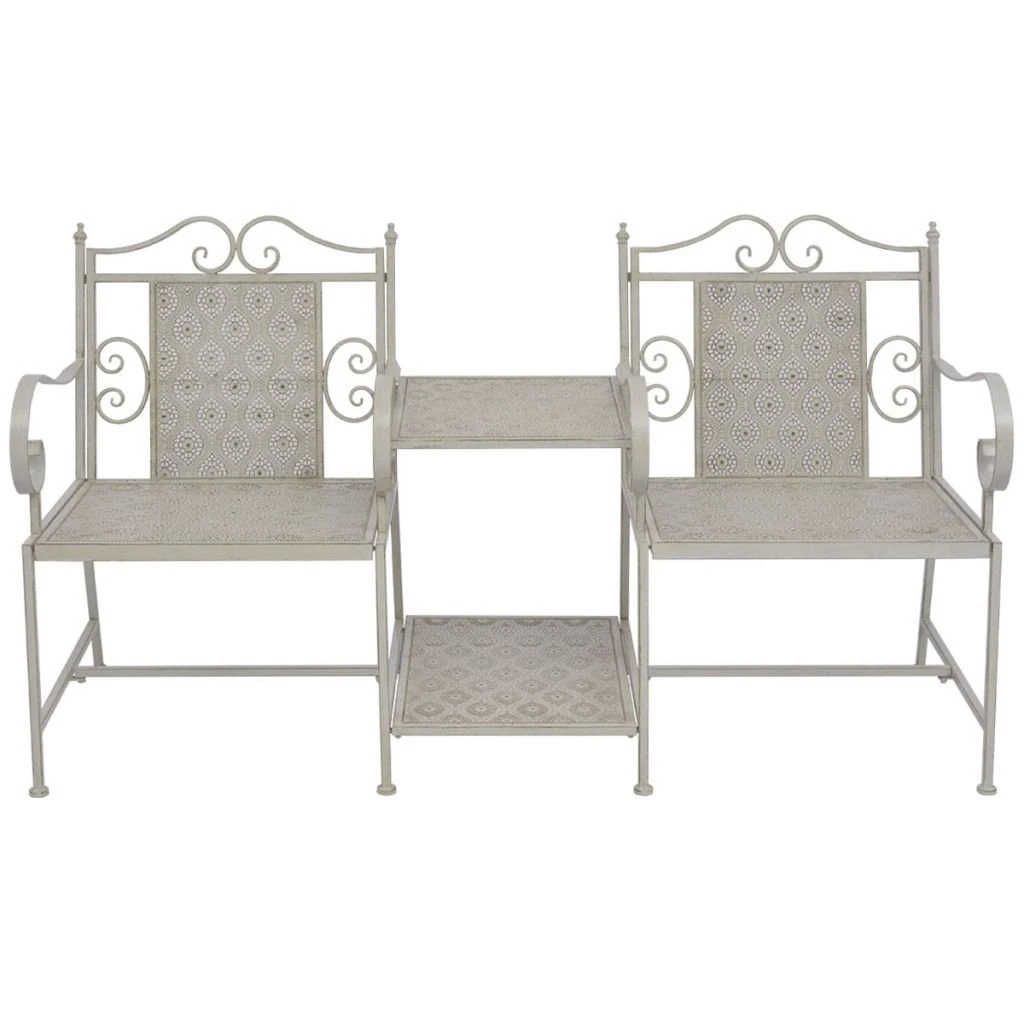 Ta ławka ogrodowa w stylu starodawnym będzie praktycznym i dekoracyjnym dodatkiem do Twojego ogrodu! Dwumiejscowa ławka w brytyjskim stylu wykonana jest ze stali lakierowanej proszkowo, co czyni ją bardzo stabilną, trwałą i odporną na rdzę. Ozdobne, ręcznie malowane dekoracje i ”zardzewiałe” wykończenie sprawią, że ta stylowa ławka ogrodowa wyróżni się w każdym ogrodzie lub na każdym tarasie czy balkonie. Wbudowany stół i dolna półka między siedzeniami są idealne na napoje, jedzenie, książki i inne przedmioty, które chcesz mieć w zasięgu ręki. Pozwól sobie na intymną rozmowę z ukochaną osobą siedząc na tej stylowej ławce ogrodowej!