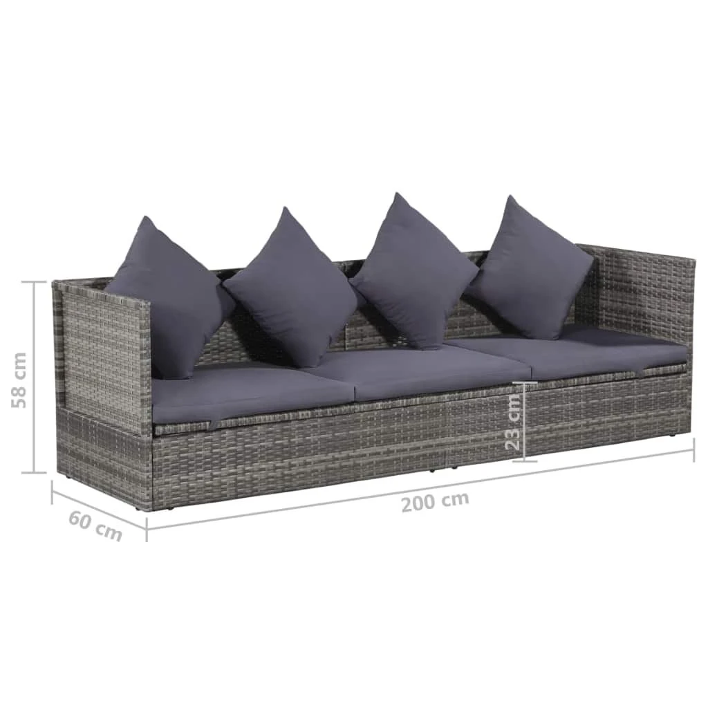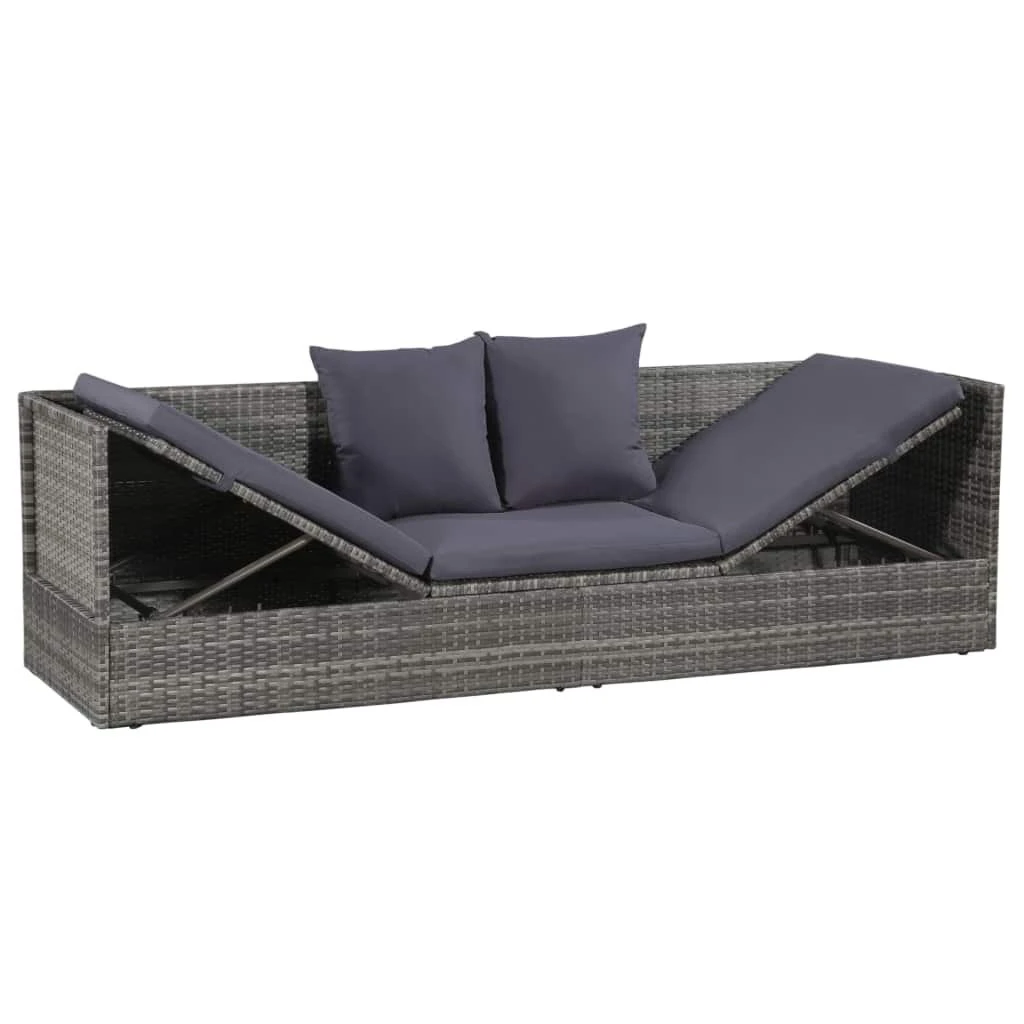 Rattanowa leżanka łączy w sobie styl i funkcjonalność. Stanie się głównym punktem w Twoim ogrodzie lub na tarasie! Dzięki zastosowaniu odpornego na działanie wody rattanu PE leżanka jest łatwa w czyszczeniu, wytrzymała oraz odpowiednia do codziennego użytkowania na zewnątrz. Posiada mocną, malowaną proszkowo, stalową ramę, dzięki której jest trwała i stabilna. Obie strony leżanki można regulować i znaleźć najwygodniejszą pozycję do siedzenia lub relaksu. Grubo wyściełane, zdejmowane poduszki pod plecy i poduszka na siedzisko zapewniają najwyższy komfort. Ich poliestrowe powłoczki można bez trudu zdjąć i wyprać. Leżanka jest łatwa w montażu. Przesyłka obejmuje 1 leżankę i 1 dużą poduszkę na siedzisko i 4 poduszki pod plecy. Uwaga: zalecamy przykrycie mebla na czas deszczu śniegu i mrozu.