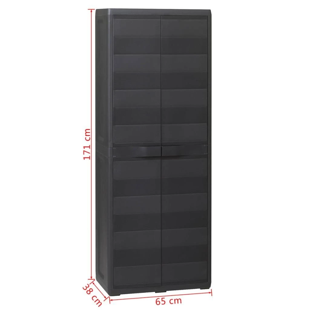 Nasza wysokiej jakości szafa ogrodowa jest idealna do porządkowania i przechowywania artykułów gospodarstwa domowego, narzędzi i innych przedmiotów w ogrodzie, na tarasie itd. Dzięki ponadczasowemu wyglądowi będzie pasować do każdego wystroju. Szafa ze znakiem jakości TÜV-GS wykonana jest z mocnego, wytrzymałego polipropylenu (PP). Posiada wentylowane półki o regulowanej wysokości, dzięki czemu pomieści przedmioty o różnych gabarytach. Można ją zamknąć na kłódkę dla większego bezpieczeństwa (kłódka nie jest załączona). Szafa ogrodowa jest bardzo łatwa w czyszczeniu. Ma kompaktową budowę, dzięki czemu zapewnia optymalne wykorzystanie ograniczonej przestrzeni. Montaż jest prosty.