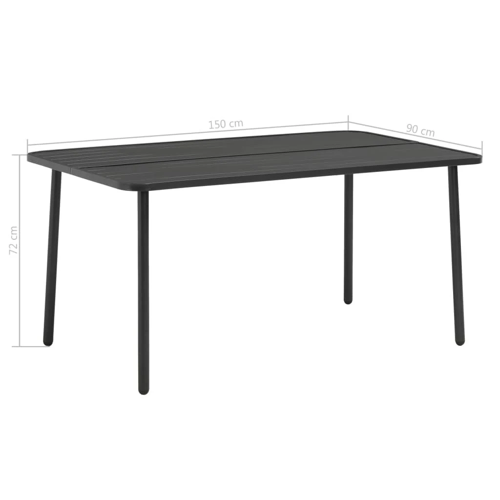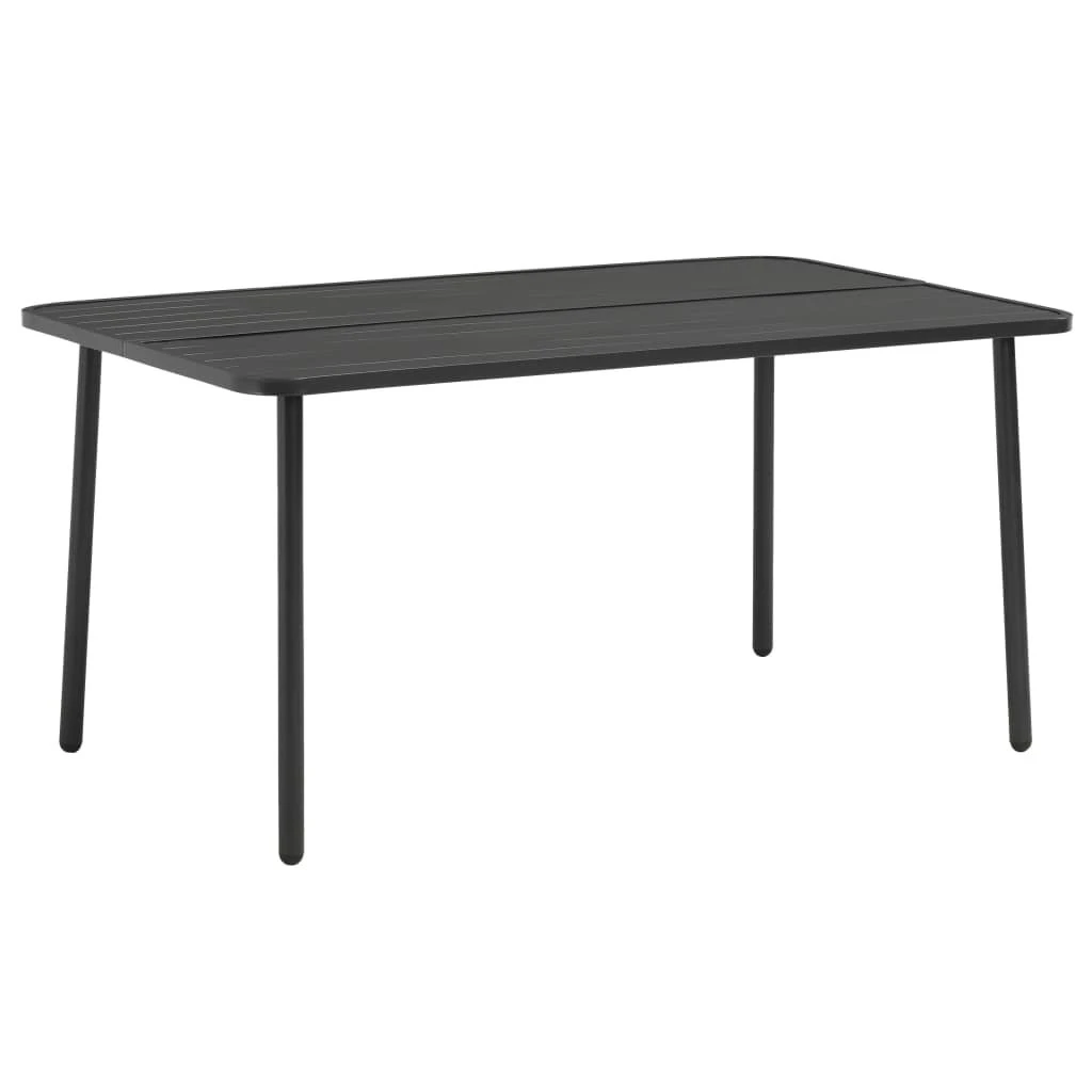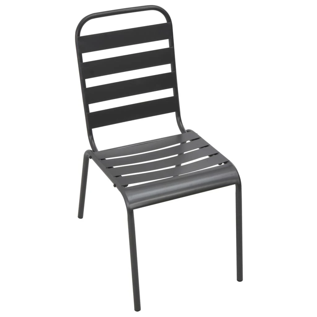 Komplet mebli ogrodowych ma listwowy wz??r, kt??ry wniesie nieco industrialnego charakteru na Tw??j taras, do ogrodu lub jadalni. Wysokiej jako?ci st??? i krzes?a zosta?y wykonane z wytrzyma?ej stali pokrytej pow?ok