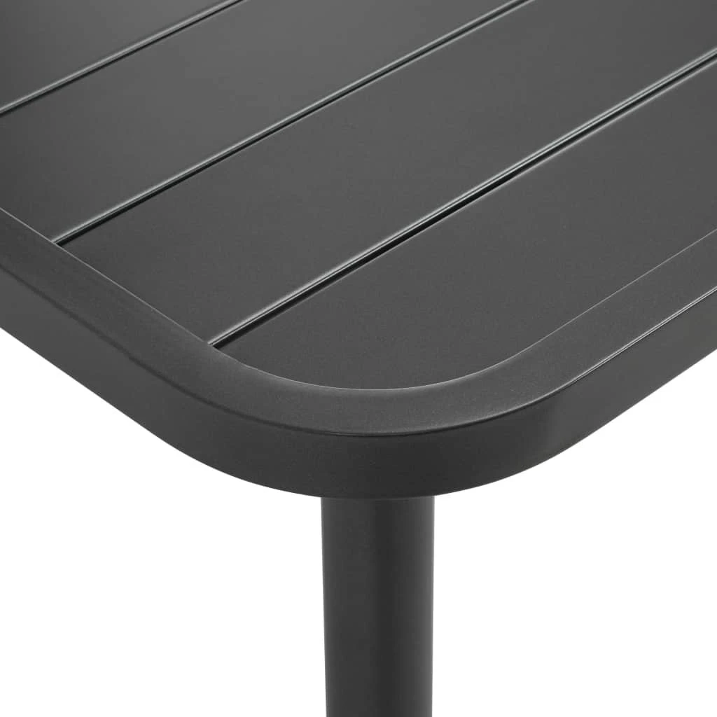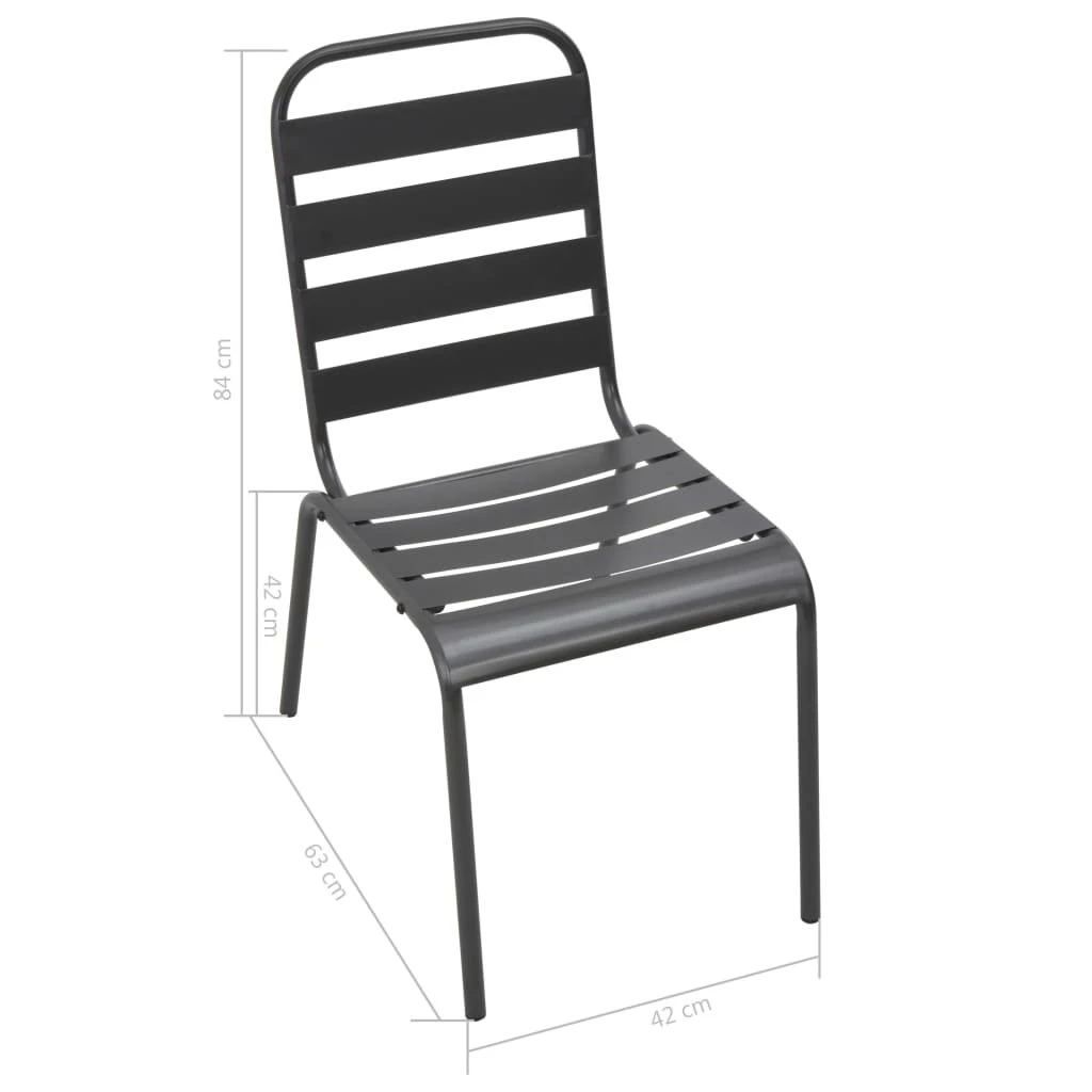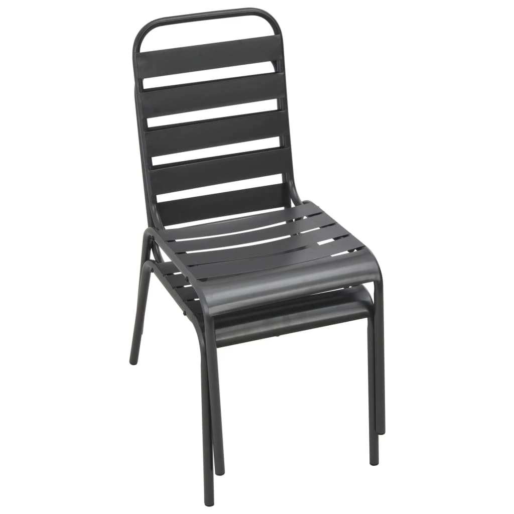 Komplet mebli ogrodowych ma listwowy wz??r, kt??ry wniesie nieco industrialnego charakteru na Tw??j taras, do ogrodu lub jadalni. Wysokiej jako?ci st??? i krzes?a zosta?y wykonane z wytrzyma?ej stali pokrytej pow?ok