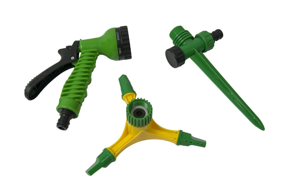 Dodatkowo w zestawie znajduje się rozpryskiwacz wielofunkcyjny posiadający 7 trybów oraz funkcję blokady. Wystarczy odchylić metalowy haczyk w pistolecie, aby zablokować spust. Woda wtedy będzie płynąć bez konieczności ciągłego przyciskania spustu pistoletu. Pistolet posiada również wygodną, antypoślizgową rączkę.