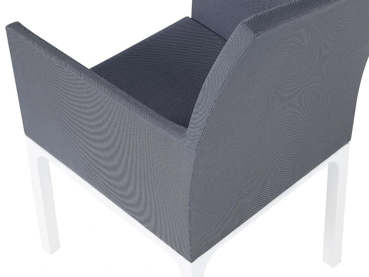 Cechy produktu: Oparcie i podłokietniki zapewniają wygodę, Tradycyjny design z nutą nowoczesności, Zaprojektowany specjalnie do użytku zewnętrznego, Wytrzymała i odporna na rdzę rama, Odporność tkaniny na działanie promieni słonecznych – klasa 5 (ISO 105-B02)