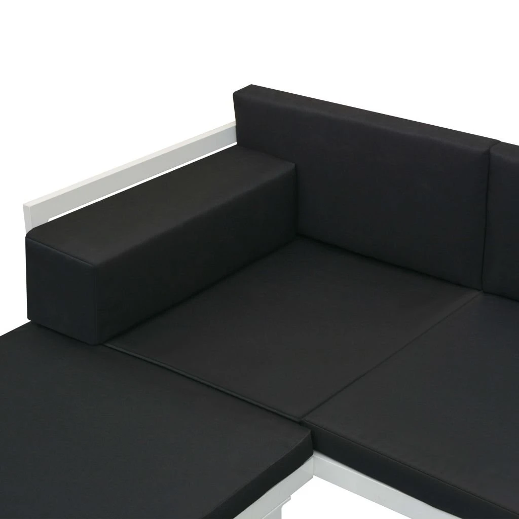 Zestaw mebli wypoczynkowych wykonanych z najwyższej jakości materiałów łączy w sobie styl i funkcjonalność. Stanie się głównym punktem w Twoim ogrodzie lub na tarasie. Zestaw zaprojektowano tak, by można było z niego korzystać przez cały rok na zewnątrz. Dzięki ramie ze 100% aluminium, komplet ten jest łatwy w czyszczeniu, wytrzymały oraz odpowiedni do codziennego użytku. Siedziska wykonano z tkaniny textilene, która jest bardzo komfortowa oraz odporna na warunki pogodowe. Grube, zdejmowane poduszki siedziska, oparcia i podłokietników są wygodne i nadają się do pranie w pralce. Przesyłka zawiera: 2 sofy dwuosobowe (prawa i lewa), 1 otomanę, 1 stolik kawowy z 5-milimetrowym, szklanym blatem, 3 poduszki na siedziska, 4 poduszki pod plecy i 2 poduszki na podłokietniki. Uwaga: zalecamy przykrycie zestawu na czas deszczu, śniegu i mrozu.