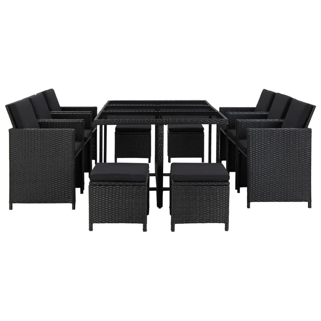 Stylowy zestaw mebli rattanowych stanie się głównym punktem w Twoim ogrodzie, na tarasie lub patio. Ten zestaw mebli rattanowych o eleganckim designie posłuży znakomicie do zaserwowania posiłku na świeżym powietrzu lub relaksu w ogrodzie. Kryte proszkowo stalowe ramy sprawią, że stół, krzesła i stołki są stabilne, a dzięki lekkiej konstrukcji wszystkie elementy można łatwo przestawić. Zastosowanie odpornego na działanie wody i warunki pogodowe rattanu PE sprawia, że meble dają się łatwo czyścić. Szklany blat jest również łatwy w czyszczeniu wilgotną ściereczką. Grube, miękkie, wypełnione gąbką poduszki na siedziska i pod plecy są niezwykle wygodne i wykonane z odpornego na wodę poliestru. Powłoczki z suwakami można zdjąć i wyprać. Przesyłka zawiera: 1 stół, 6 krzeseł, 4 stołki i 16 poduszek. Zalecamy zabezpieczenie zestawu na czas deszczu, śniegu i mrozu.