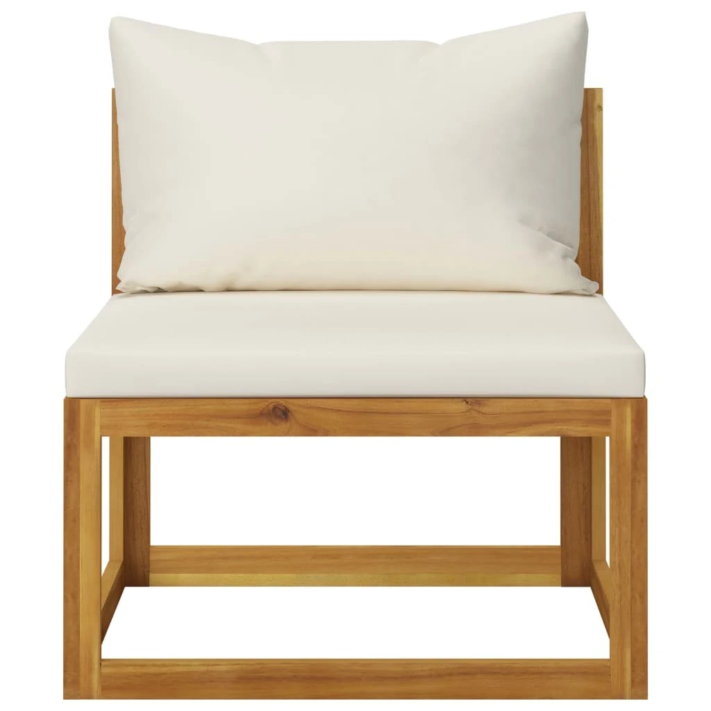 Zestaw drewnianych mebli wypoczynkowych doskonale łączy styl i funkcjonalność. Dzięki niemu możesz zrelaksować się ze swoimi znajomymi lub rodziną w ogrodzie. Zawierający ramy z litego drewna akacjowego zestaw mebli jest mocny, trwały i wytrzymały, a dzięki wykończeniu olejem także odpowiedni do użytkowania na zewnątrz. Zdejmowane poduszki na siedziska i oparcia są grubo wypełnione i zapewniają komfort siedzenia. W zestawie znajduje się także stolik kawowy o unikatowej konstrukcji z listew. Co więcej wyróżniający się modułową formą komplet można ustawić w dowolnej konfiguracji. Ten zestaw wypoczynkowy z pewnością stanie się głównym punktem Twojego ogrodu lub patio.