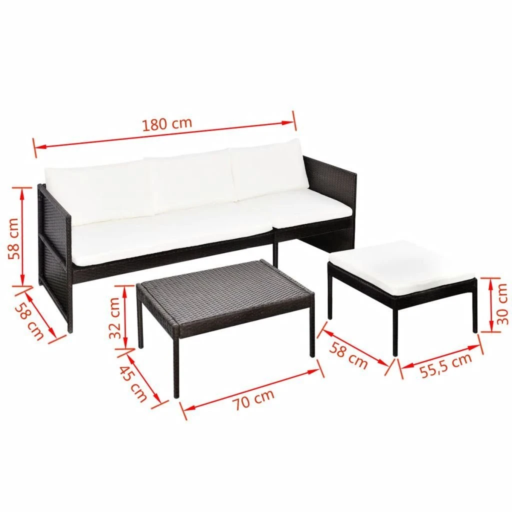 - zestaw Relton składa się z 1 sofy trzyosobowej, 1 stołka, 1 stolika kawowego, 3 poduszek na siedziska oraz 3 poduszek na oparcia