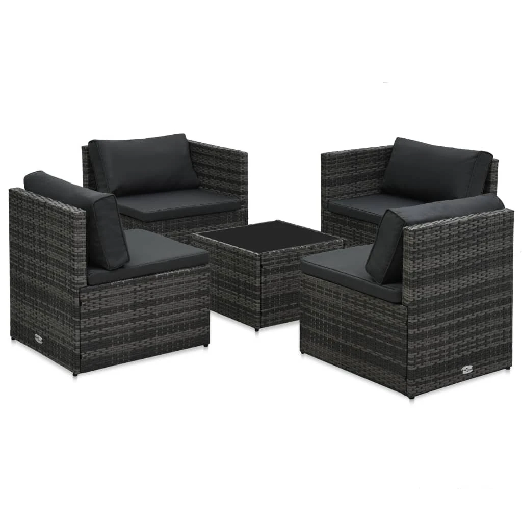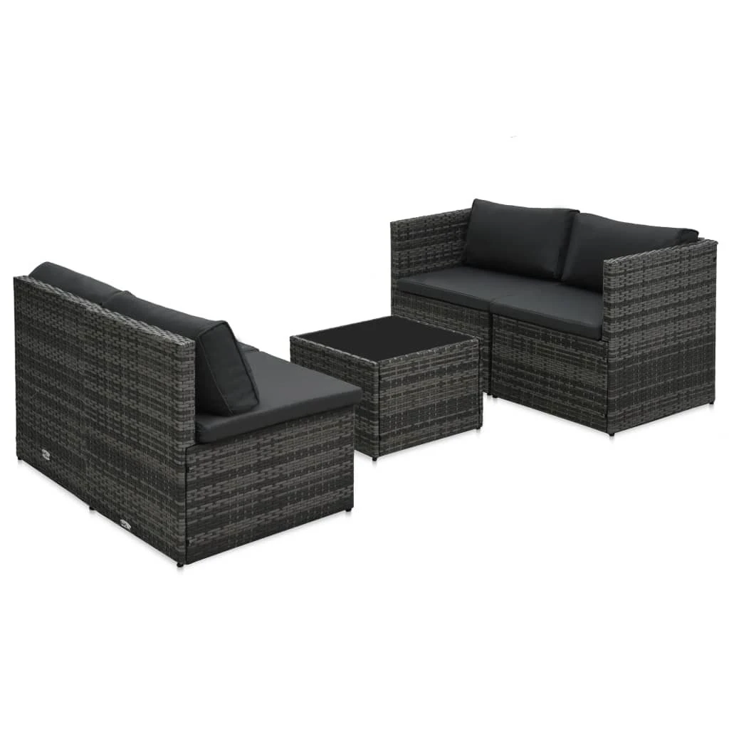 Zestaw mebli ogrodowych łączy w sobie styl i funkcjonalność oraz stanie się centralnym punktem Twojego ogrodu lub patio. Dzięki odpornemu na warunki atmosferyczne i ręcznie plecionemu rattanowi PE zestaw wypoczynkowy jest łatwy do czyszczenia, wytrzymały i odpowiedni do codziennego użytku. Poduszki na oparcia i siedziska są bardzo wygodne. Ten zestaw wypoczynkowy do ogrodu oferuje pełną wszechstronność i można go łatwo przestawiać, aby dopasować go do dowolnego otoczenia. Jest on łatwy w montażu. W skład dostawy wchodzi 1 stolik kawowy, 2 sofy środkowe, 2 sofy narożne, 4 poduszki na siedzisko i 4 poduszki na oparcie.